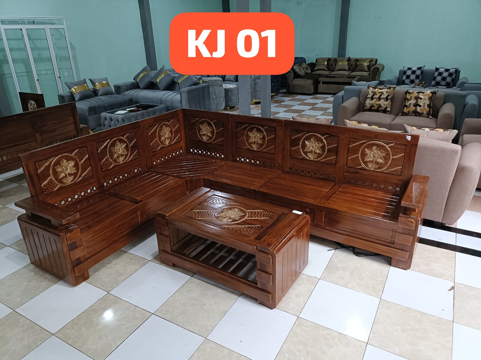 KURSI SUDUT KAYU MAHONI