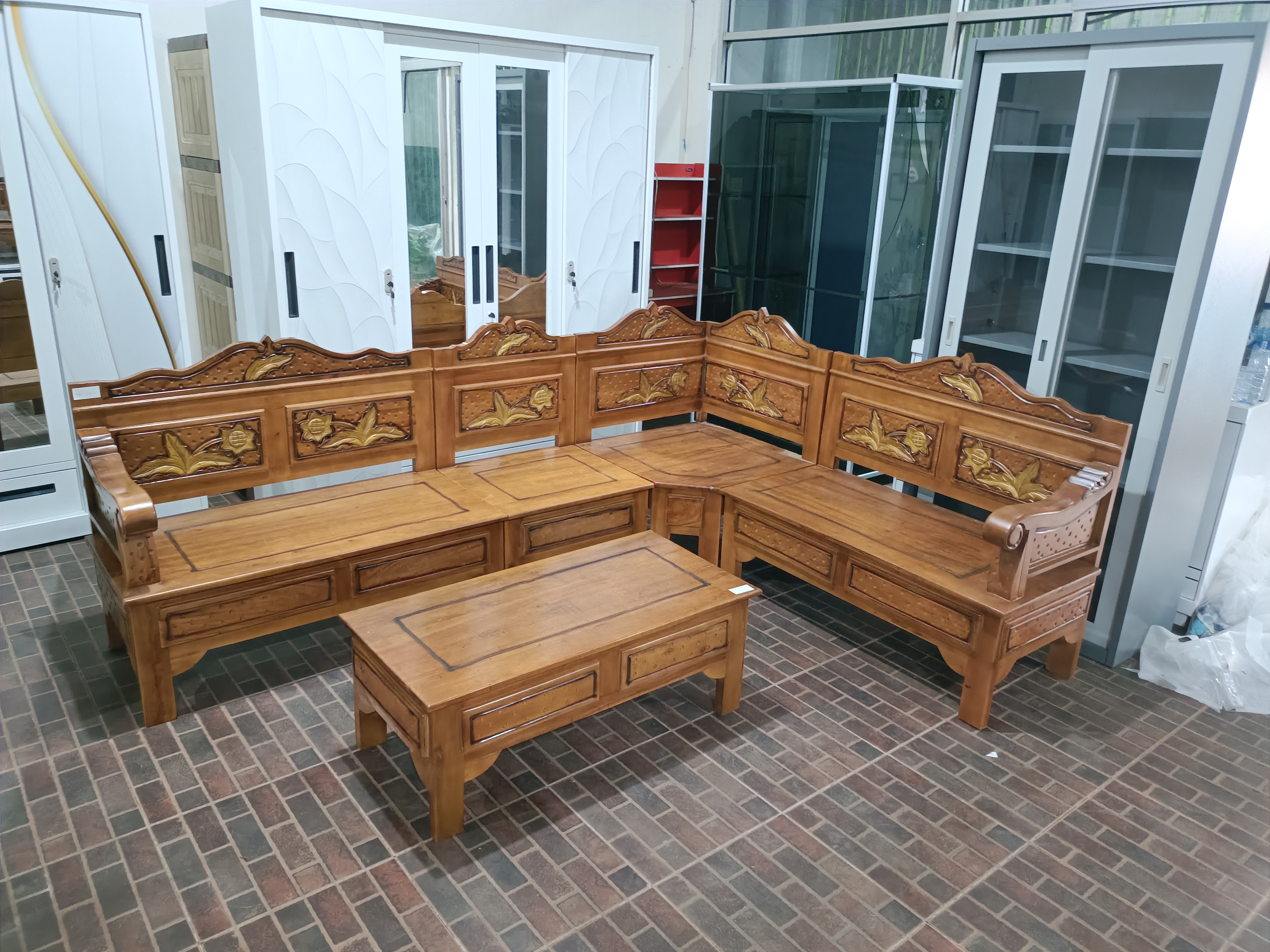 Kursi jati sudut dan hadap